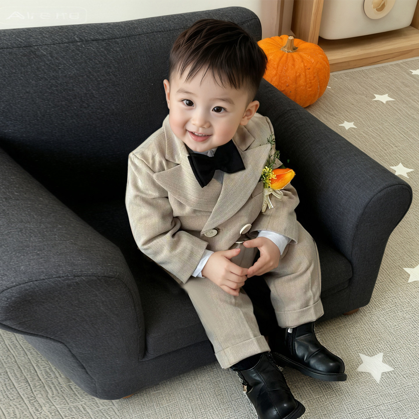 男宝宝周岁礼服秋冬男童小西装套装帅气花童婚礼服儿童生日宴西服