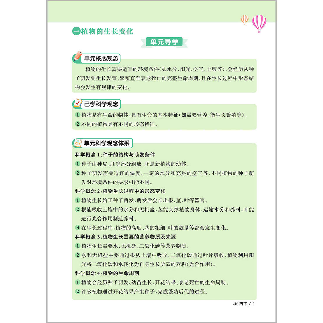 2026阳光同学课时优化作业四年级下册科学教科版 小学4年级上册科学同步配套练习册课本总复习教材辅导资料单元练习题课时提优训练