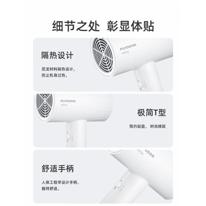 飞科电吹风机折叠大风力家用负离子护发速干风筒大功率宿舍用学生