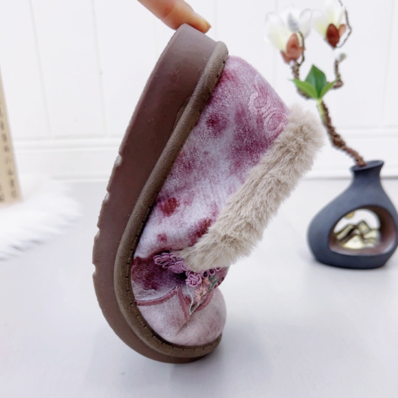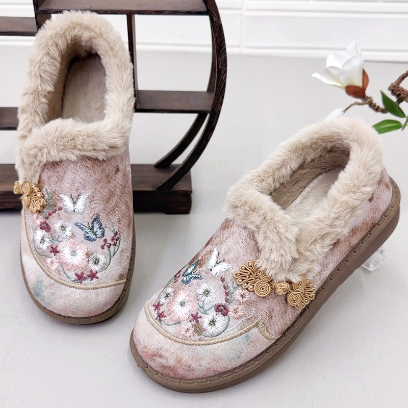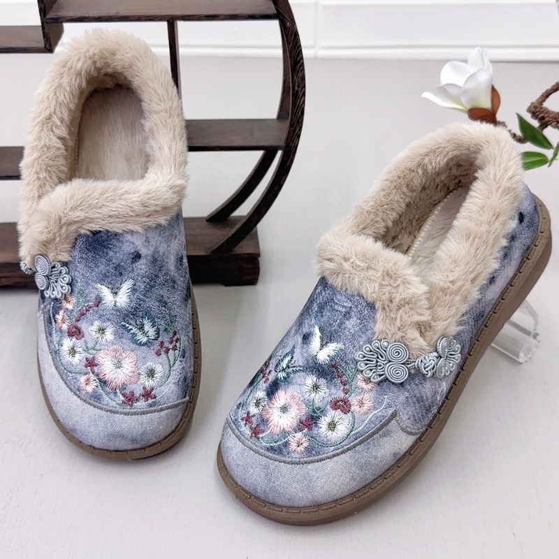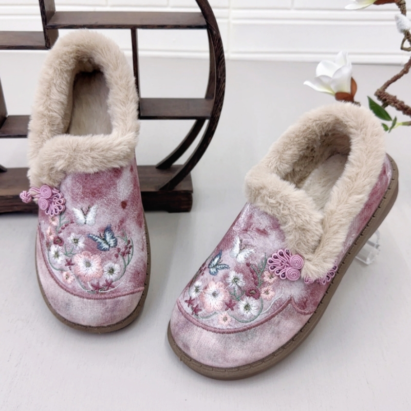 秋冬新款一脚蹬加绒汉服鞋女棉鞋老北京布鞋中老年棉鞋保暖妈妈鞋