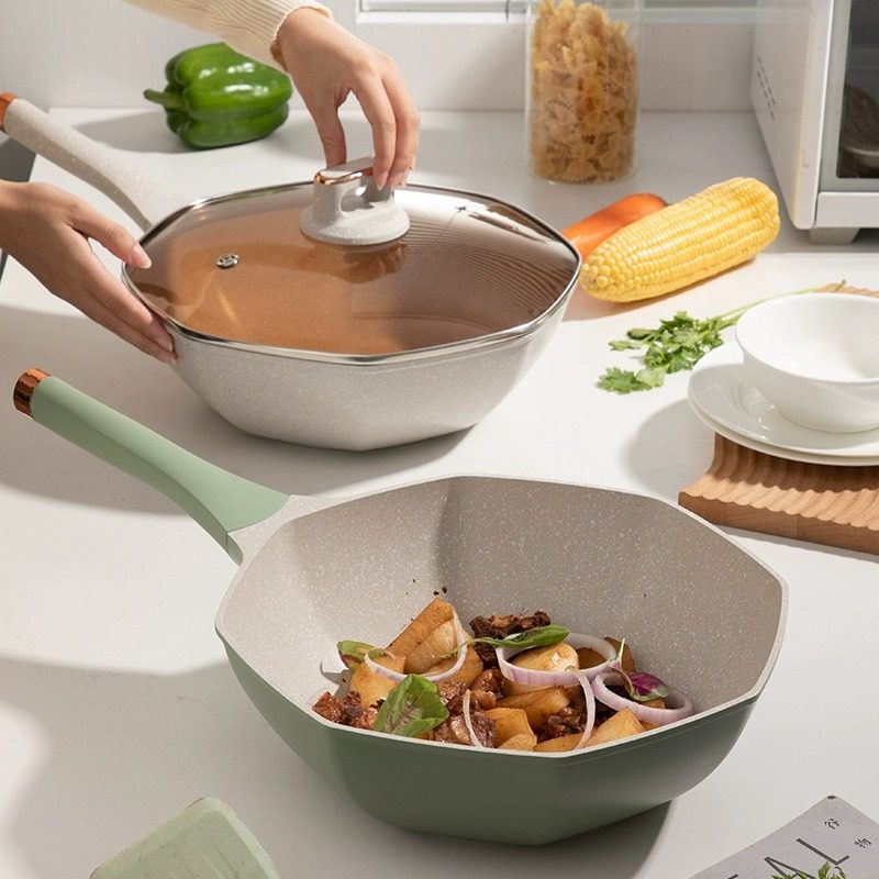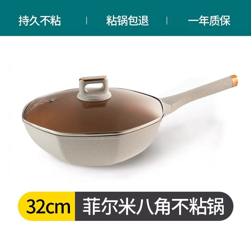 麦饭石不粘锅家用炒锅八角炒菜锅不沾平底锅电磁炉专用燃气灶适用