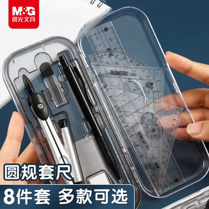 晨光文具 圆规套装 八件套套尺活动铅笔橡皮擦学生用考试学习专业便携多功能作图绘图机械建筑制图工具实惠装
