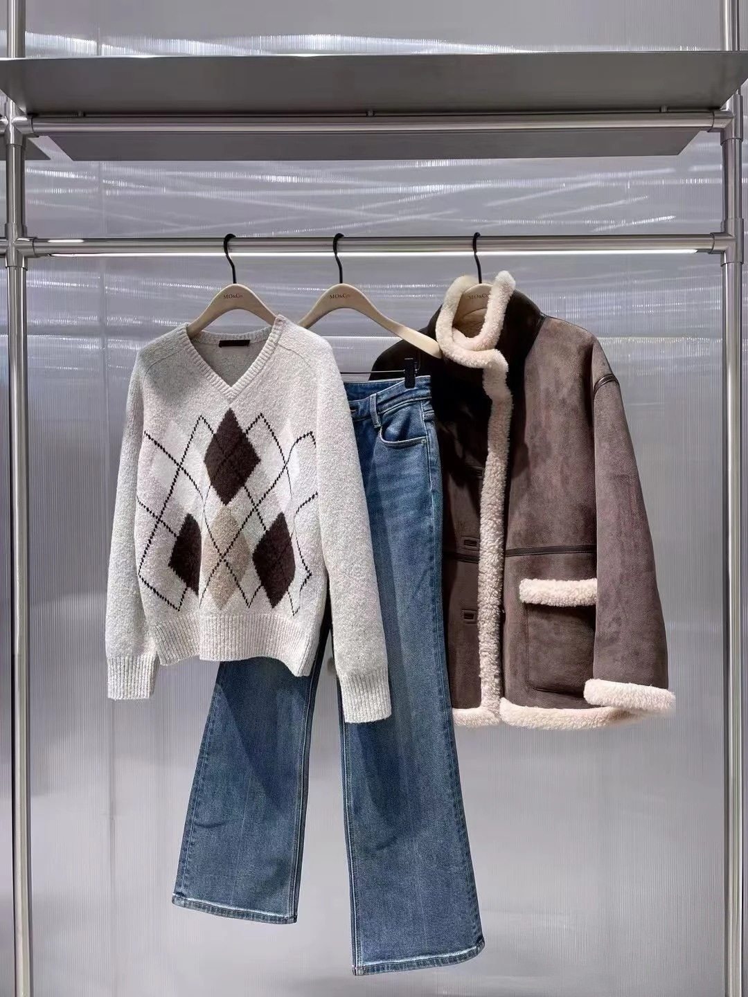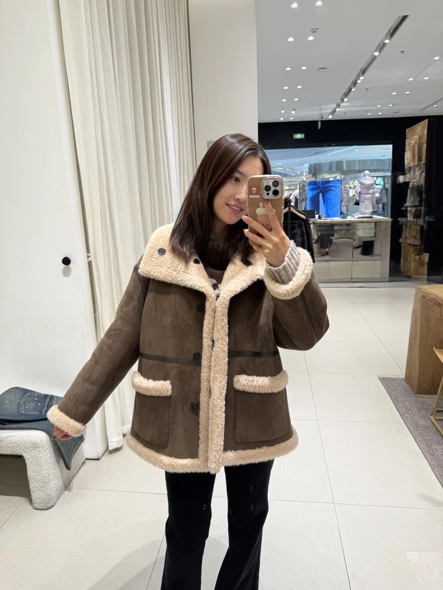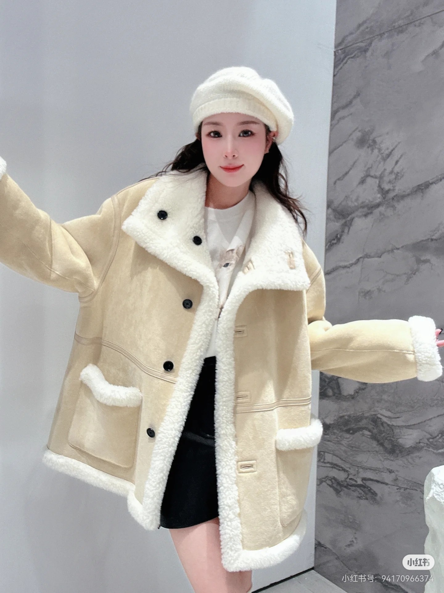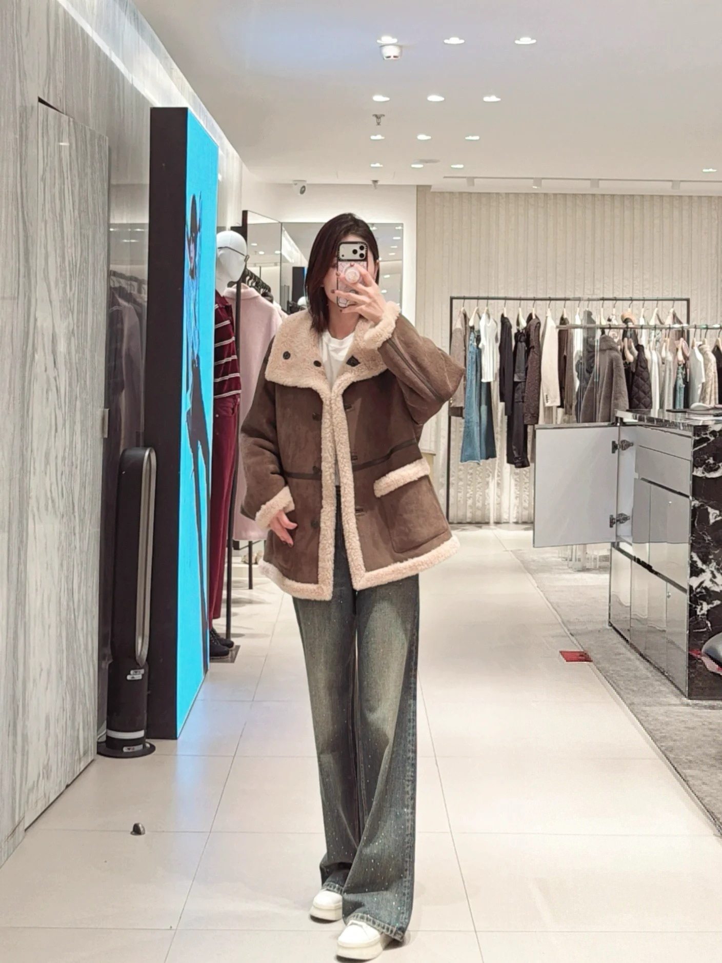 MO正品外套2025冬新品复古游牧毛绒拼接宽松高领厚实大衣E4COT022
