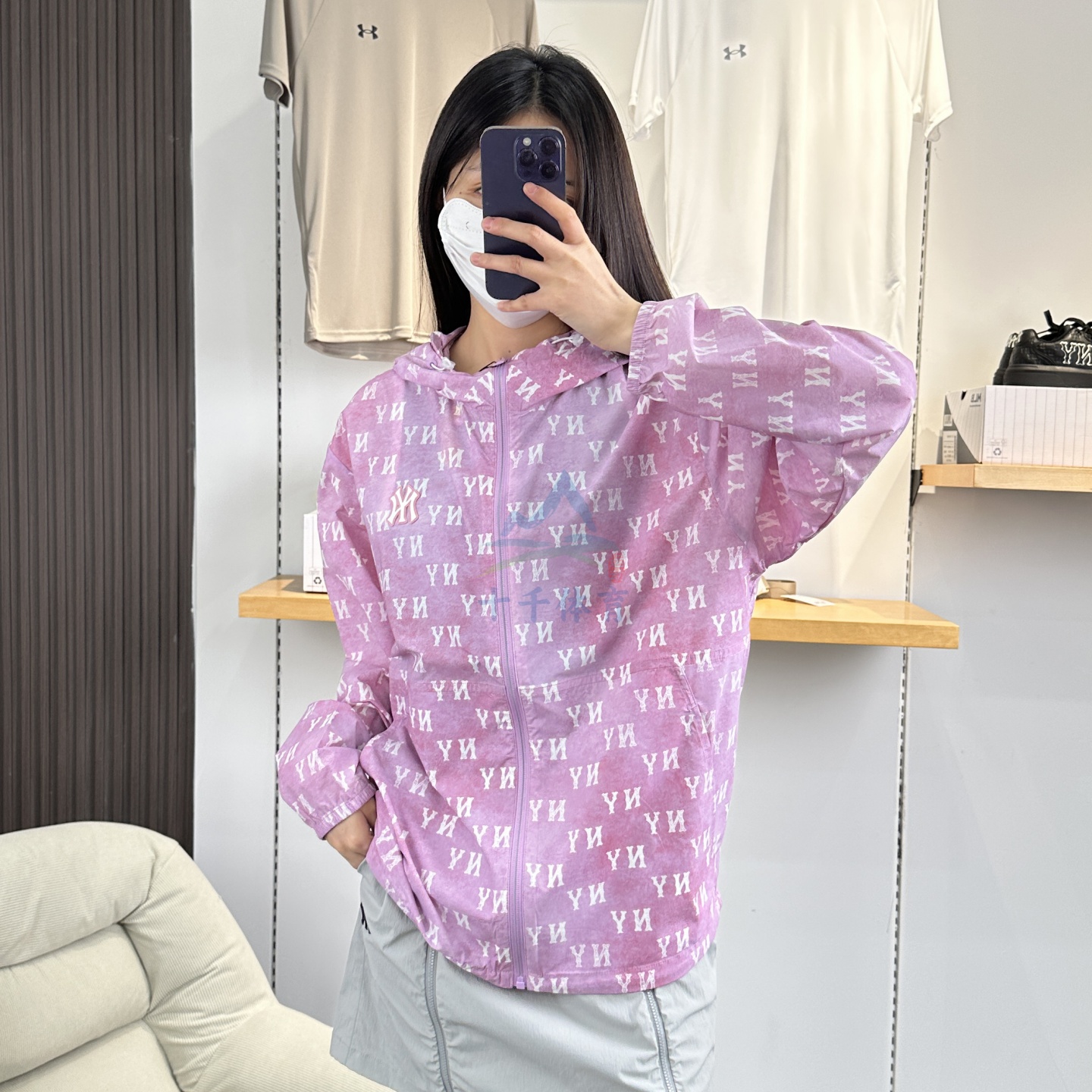25新款MLB情侣轻薄运动夹克NY老花满印男女凉感连帽外套3AWJM0753