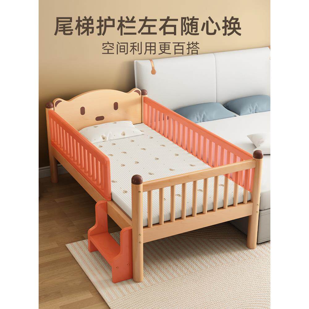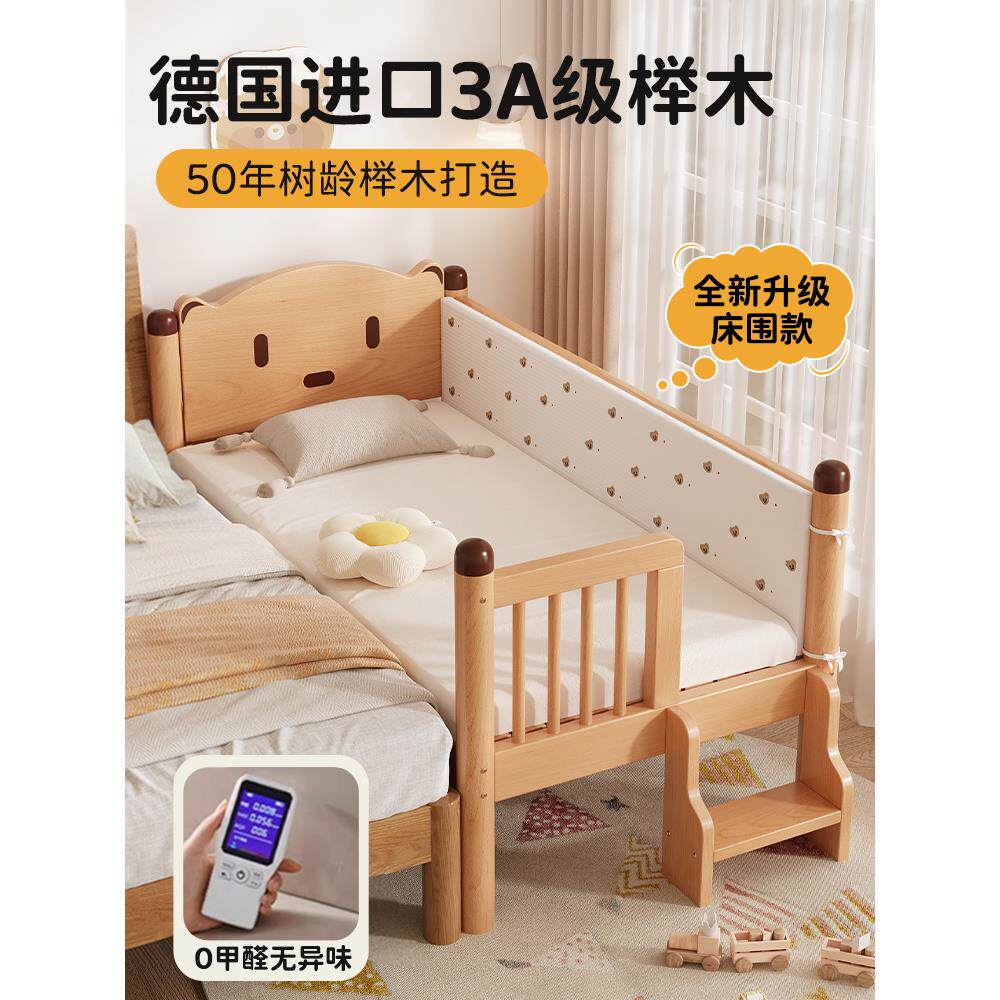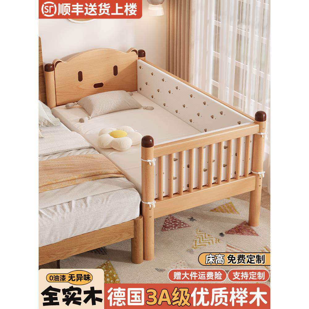 实木儿童床拼接床加宽床边榉木拼接大床带护栏单人小床宝宝婴儿床