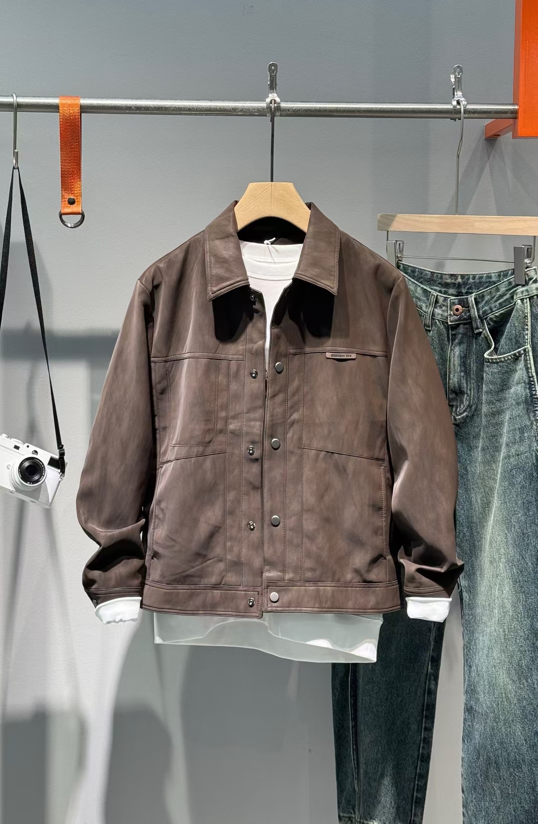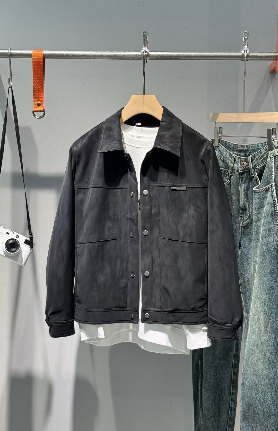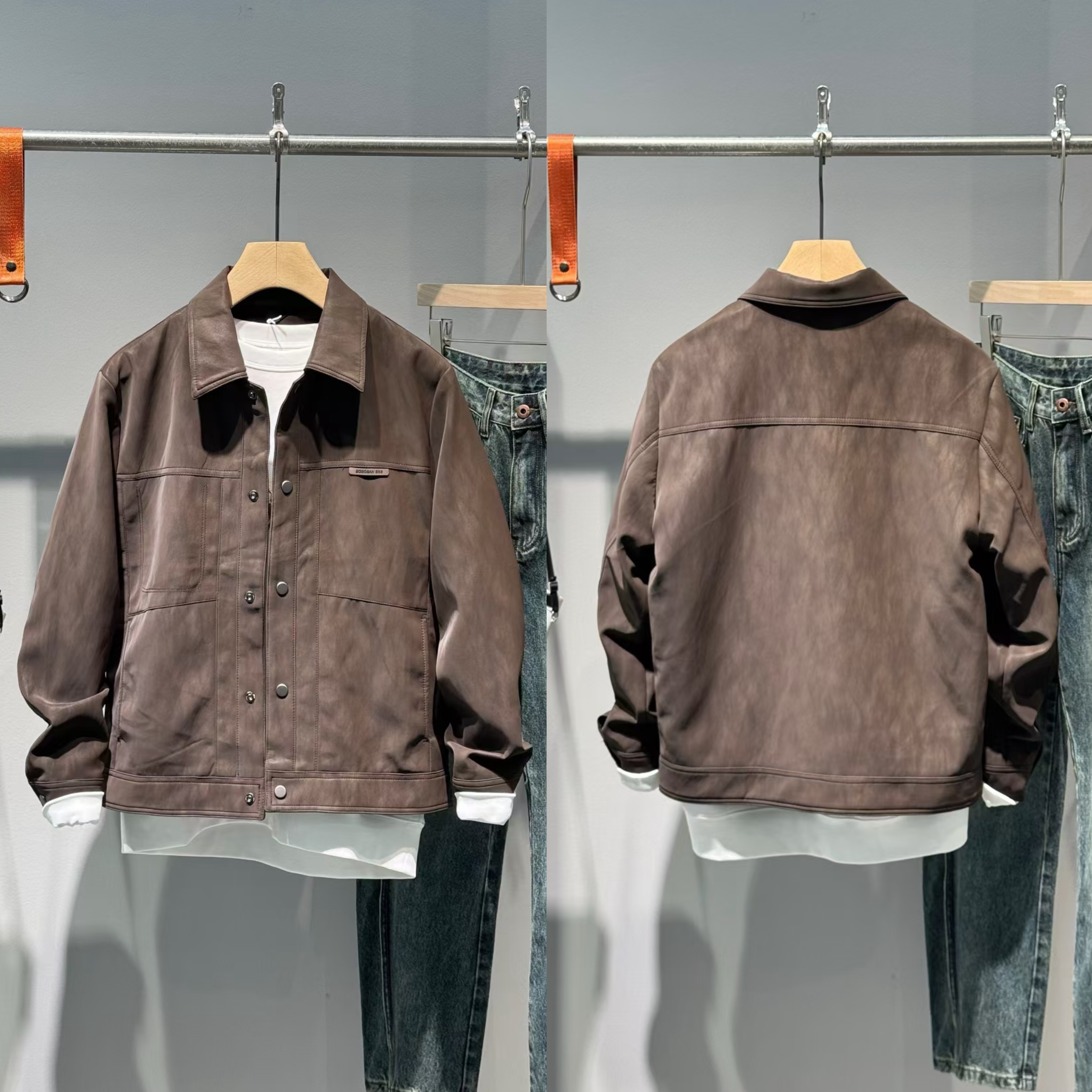 春秋冬新款男士翻领PU夹克外套潮流百搭休闲痞帅柔软时尚百搭外套
