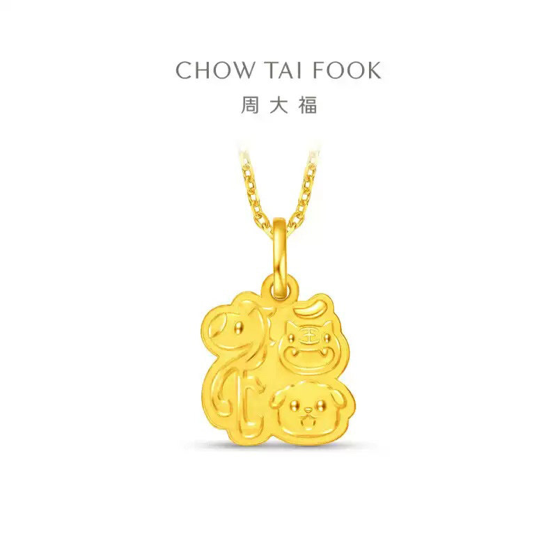 新款周大福十二生肖三合马虎狗足金黄金吊坠计价EOF1676礼物