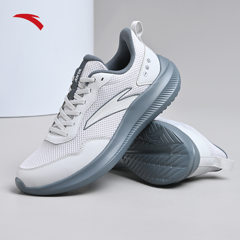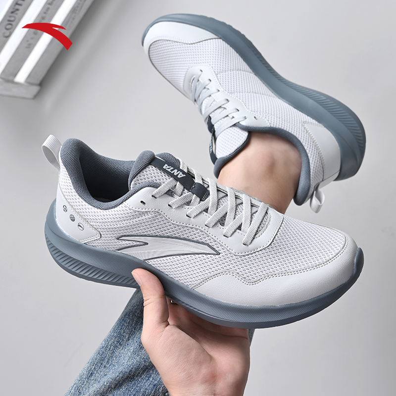 安踏男鞋灰色运动鞋男款2025秋季新款轻质防滑软底透气跑步鞋男子