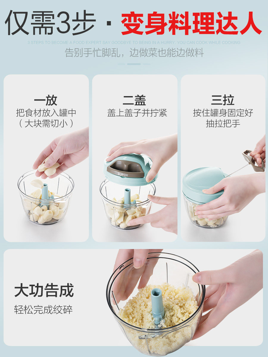 苏泊尔捣蒜泥神器手动绞肉搅碎机捣碎研磨切拉蒜葱末家用迷你小型