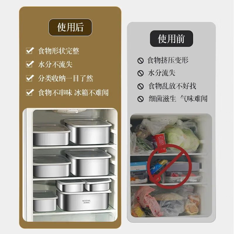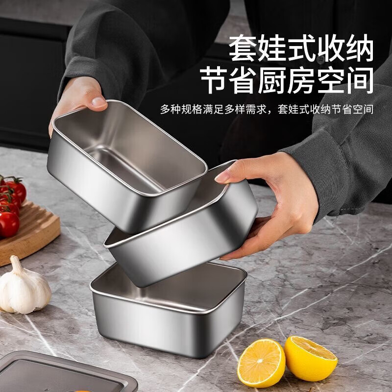 中诺316不锈钢保鲜盒带密封盖防漏分装盒方形冰箱收纳储饭盒