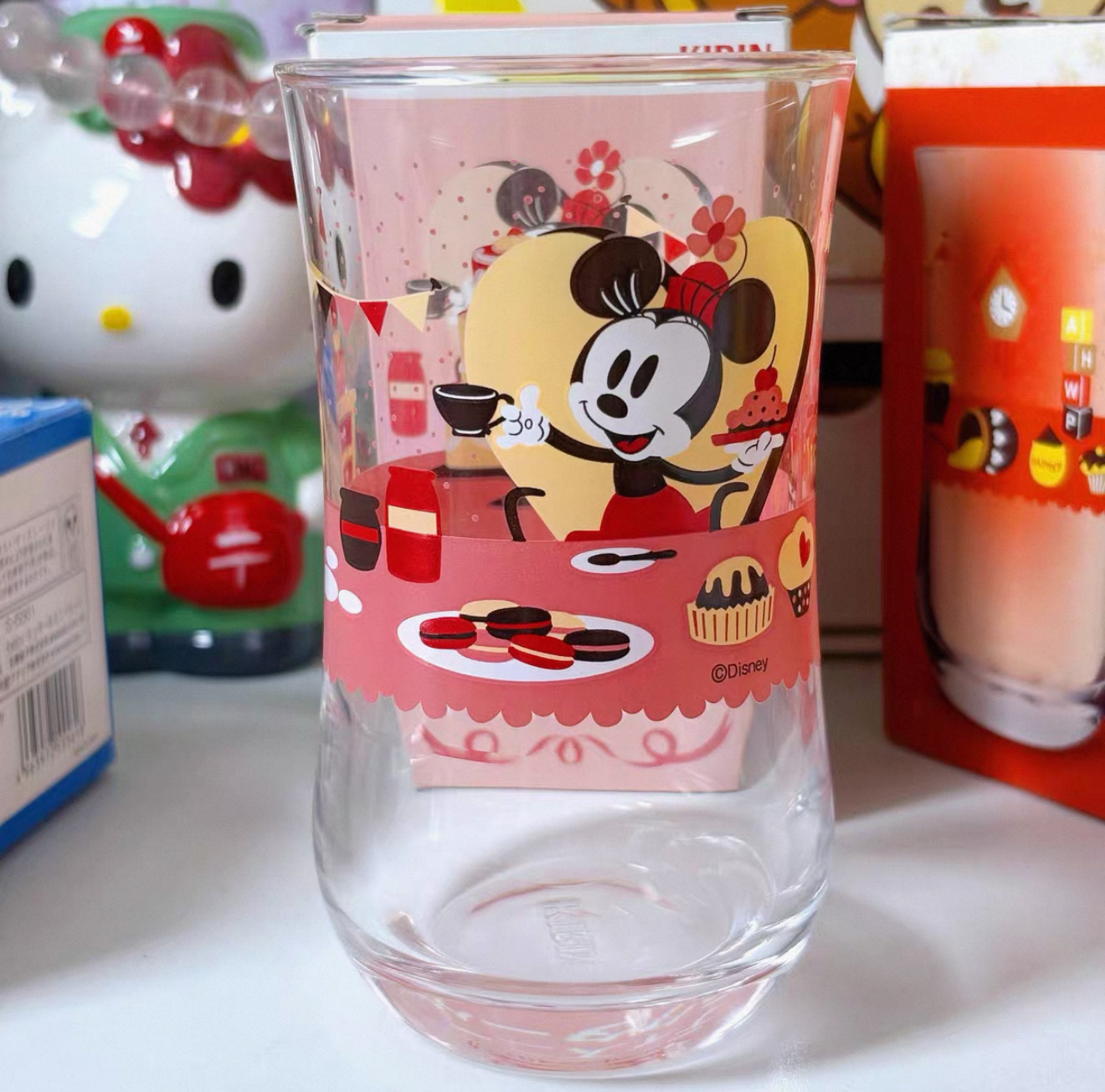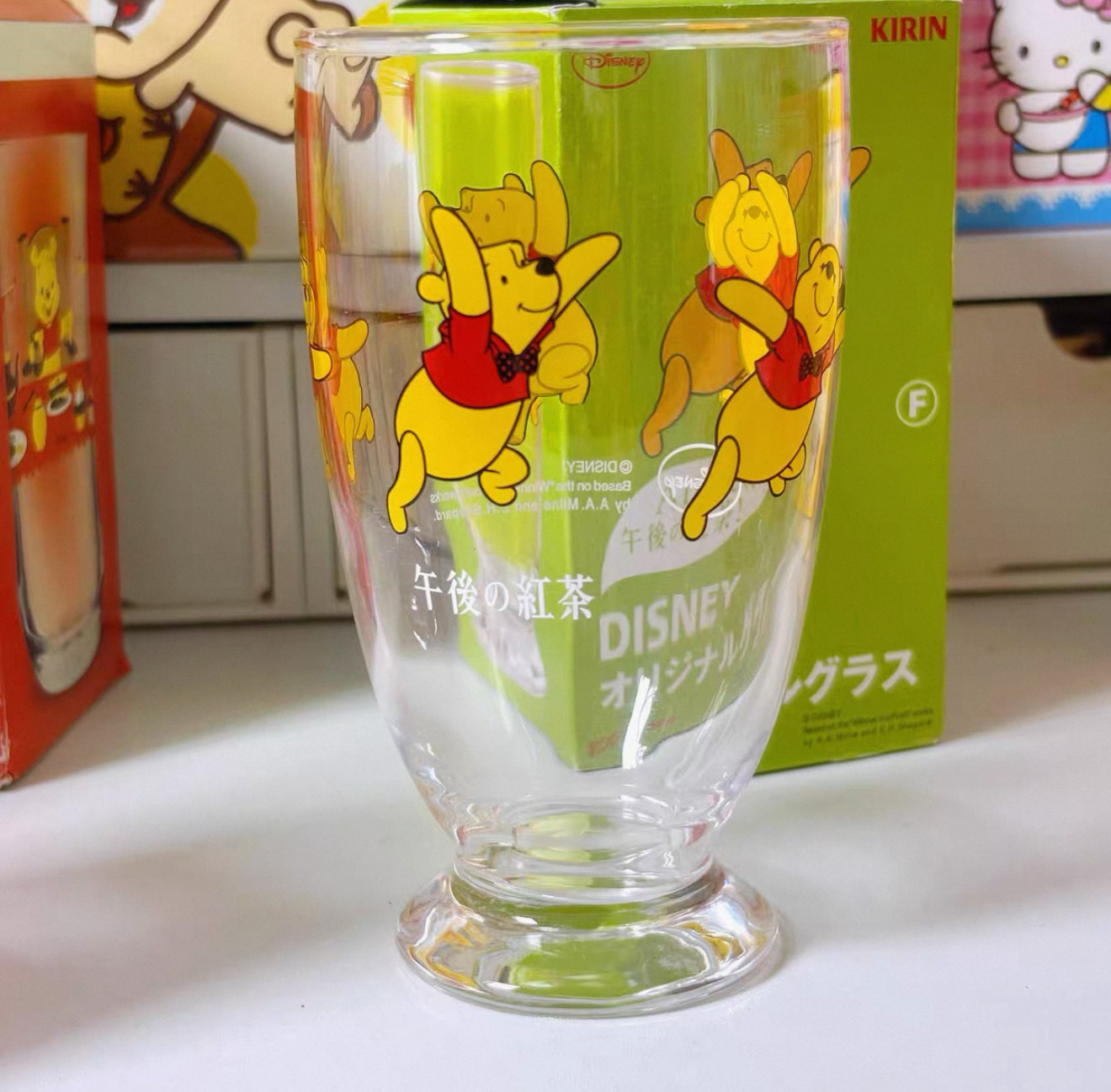 中古 正版午后红茶KIRIN迪士尼集合玻璃杯 维尼熊 米奇米妮 稀少