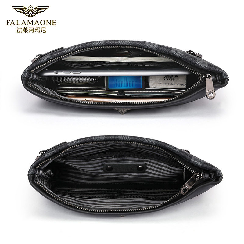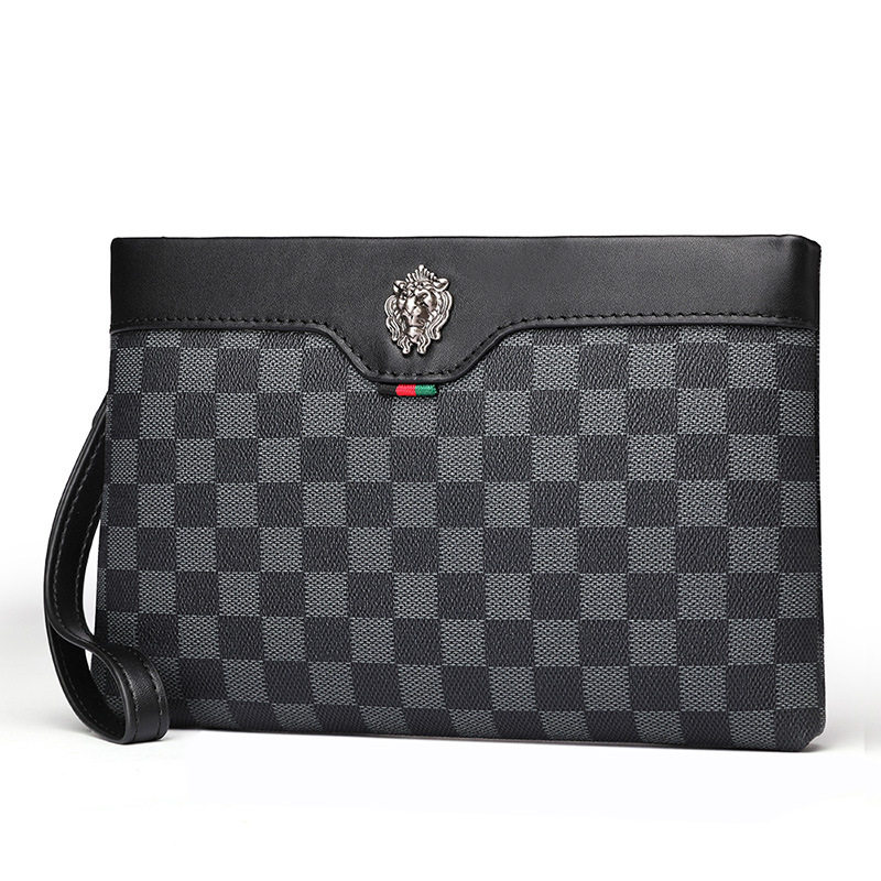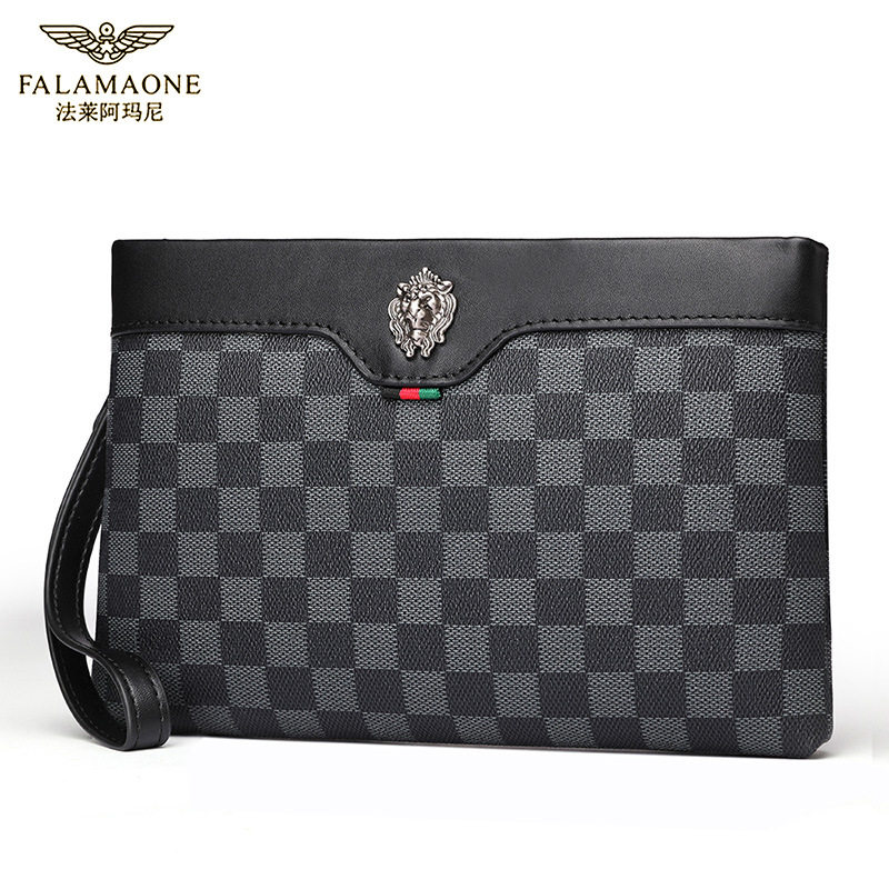 仅亏一天牛皮新款法莱阿玛尼轻奢格子男士手包百搭夹包商务休闲男