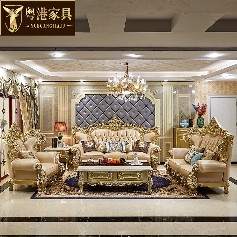 欧式真皮沙发头层牛皮新古典1234组合客厅大户型实木香槟金色包邮