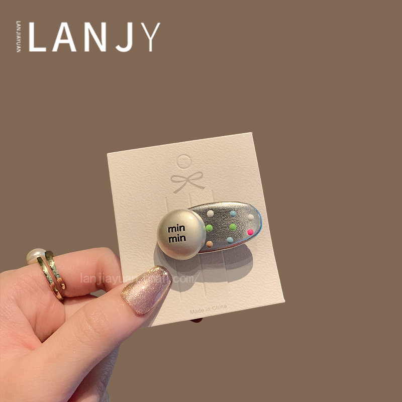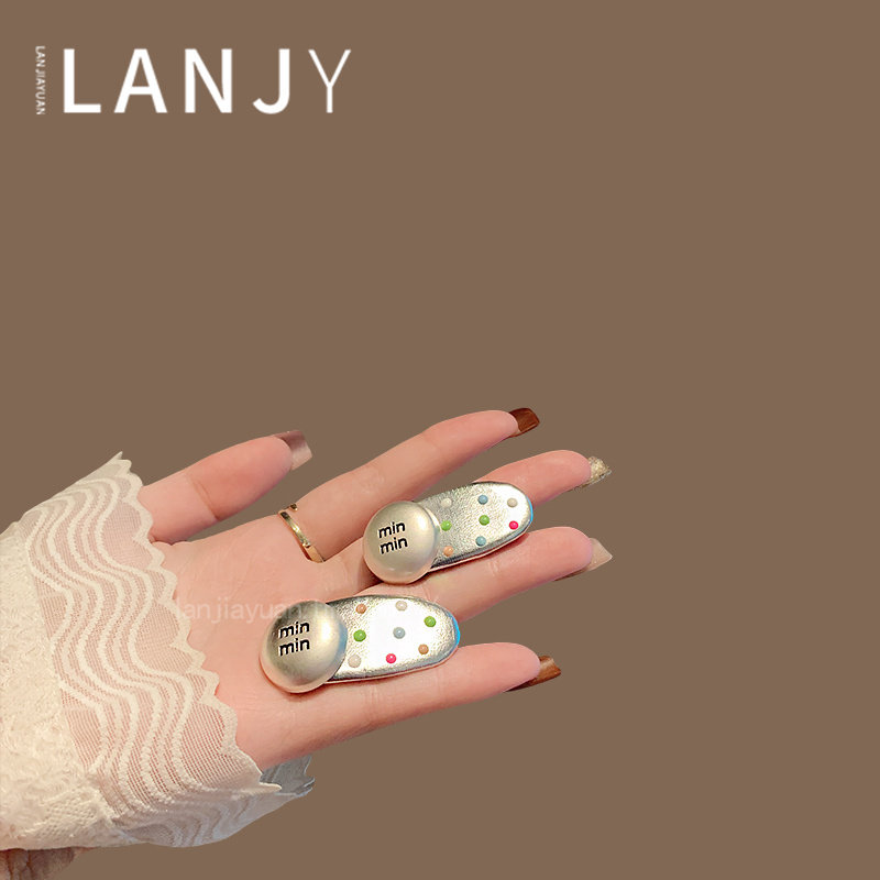 韩国东大门新款波点字母椭圆鸭嘴夹少女可爱甜美刘海侧边夹女