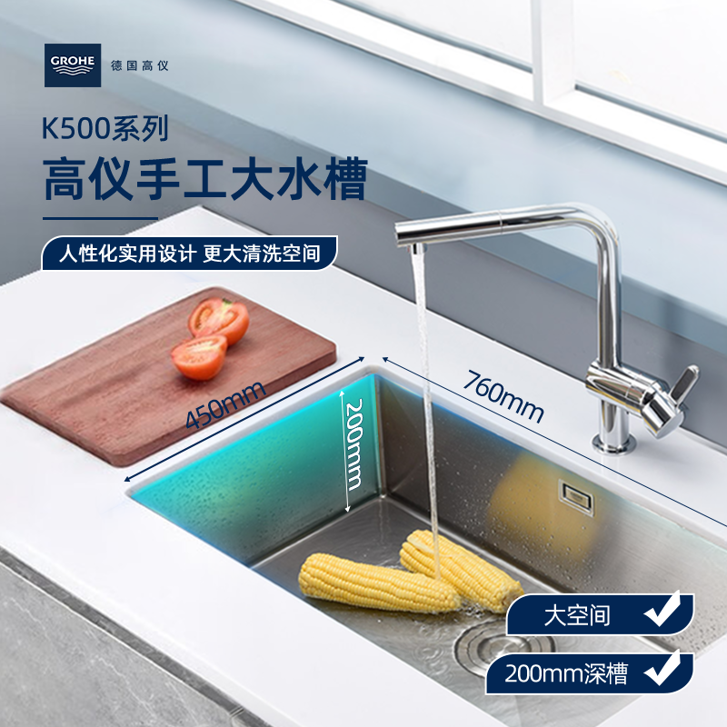 Grohe高仪水槽304不锈钢大单槽厨房洗菜盆龙头套餐