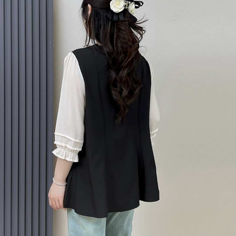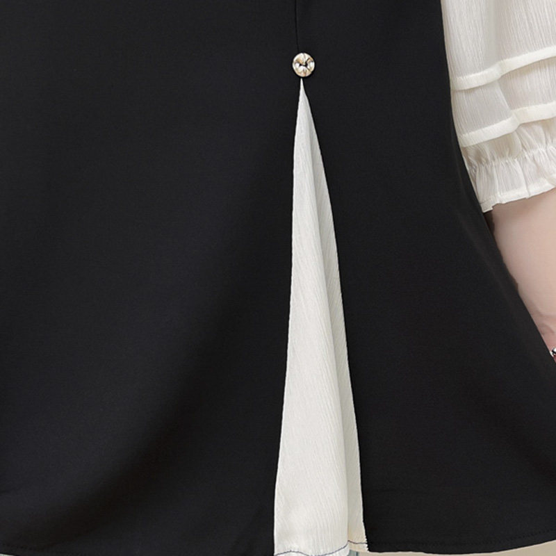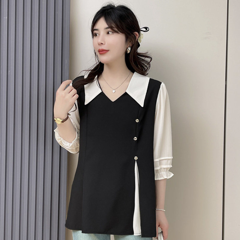 200斤胖mm上衣女显瘦遮肉收腰大码时尚雪纺拼接遮肚子中袖套头衫