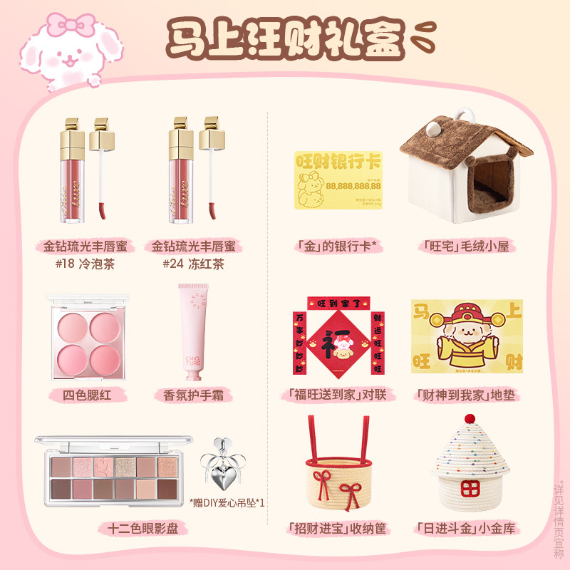 稚优泉马上汪财新年礼盒礼物彩妆化妆品全套装宠物猫窝狗窝收纳筐