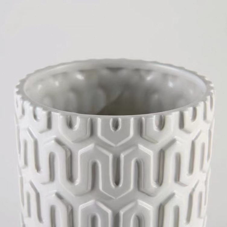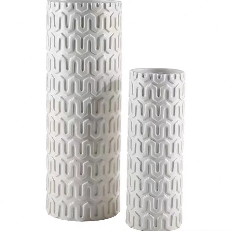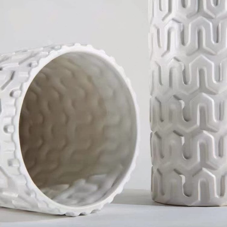 小清新 现代中式装饰U身纹客厅台面瓶餐桌陶瓷花瓶干花白色花器直