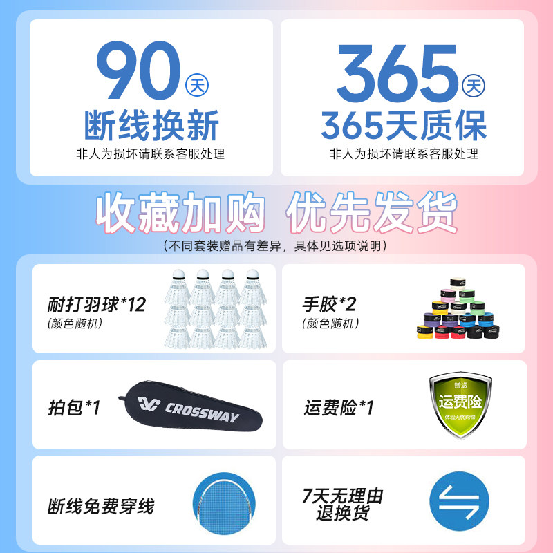 克洛斯威正品羽毛球拍成人双拍套装初学者儿童小学生超轻耐打型