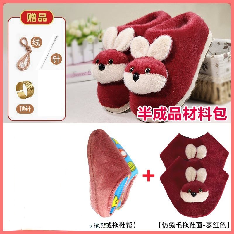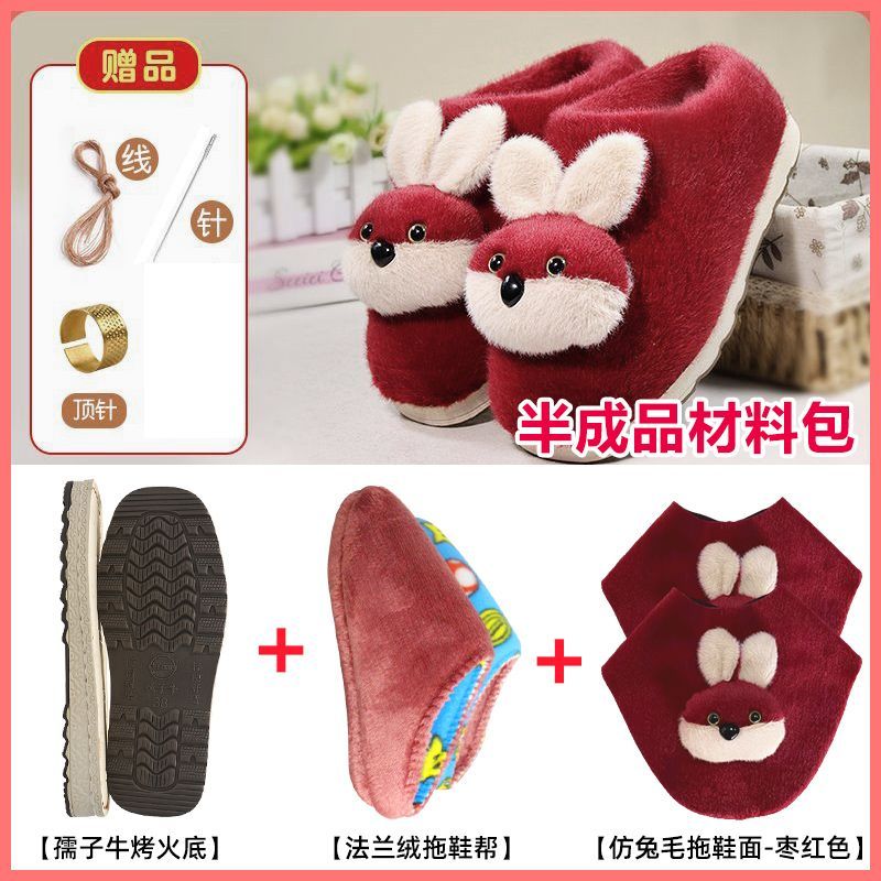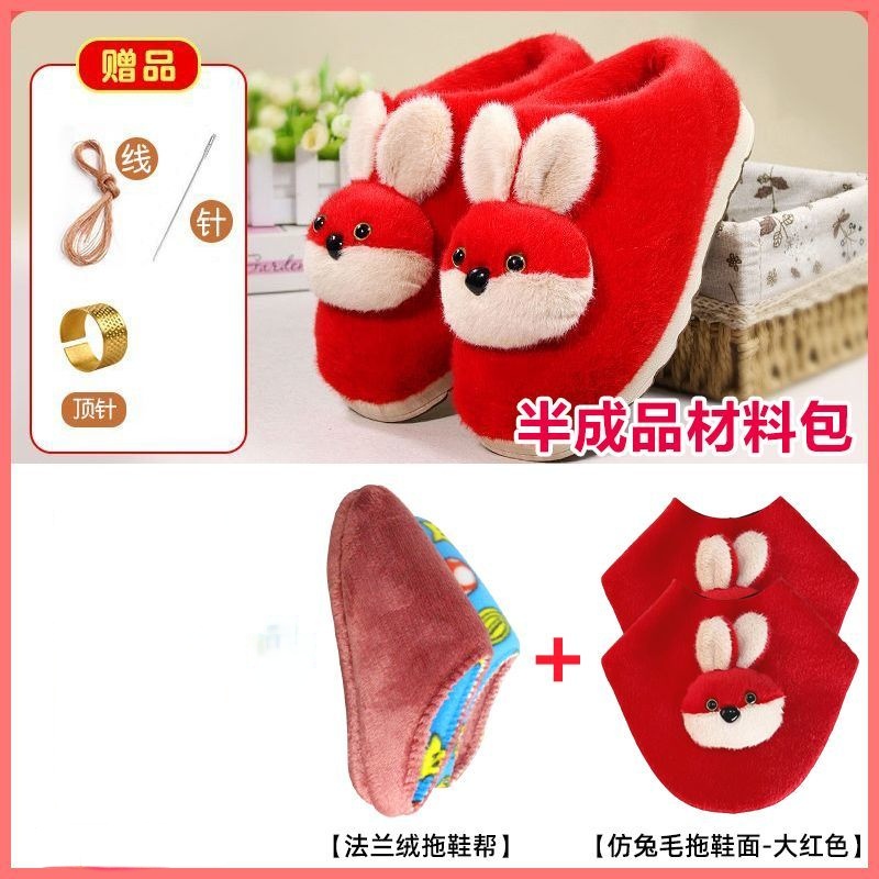 手工棉拖鞋半成品材料包全套卡通小兔毛鞋面防滑烤火鞋底海绵鞋帮