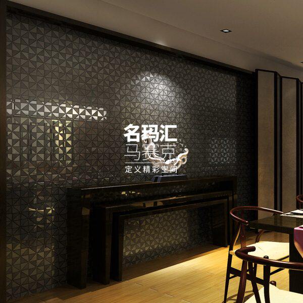 金属墙砖背景墙卫生间吧台马赛克瓷砖黑色餐厅名玛汇三角形不锈钢