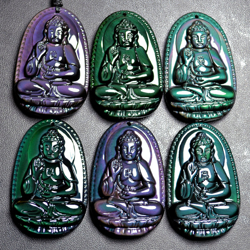 天然彩虹眼黑曜石吊坠生肖本命佛