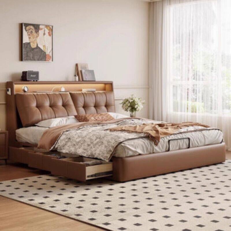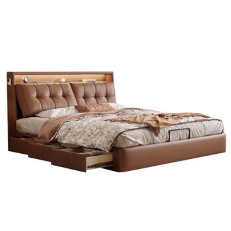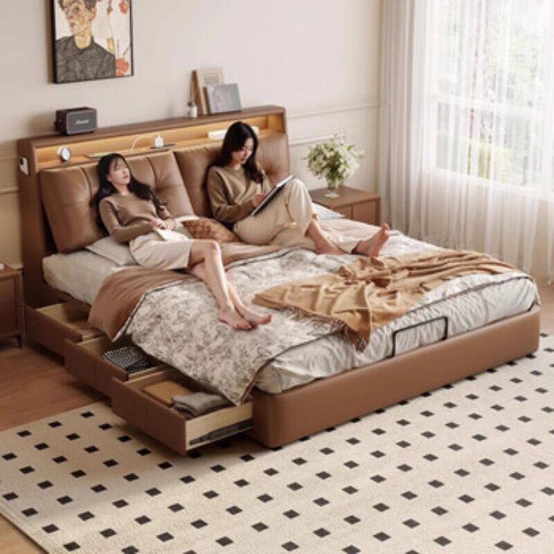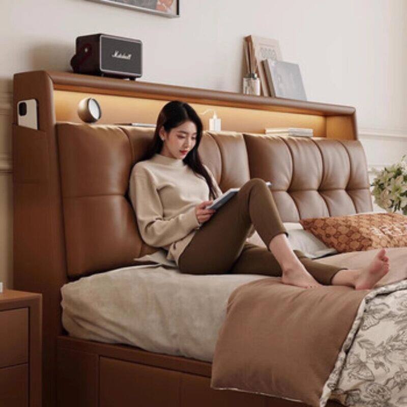 全友家居官网复古风真皮床现代简约1.8米2米主卧双人大床齐边2.2