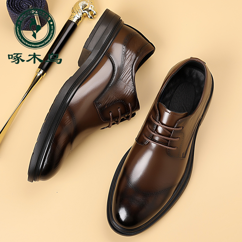 啄木鸟皮鞋男鞋真皮新款透气商务正装鞋子男士休闲防滑软皮爸爸鞋