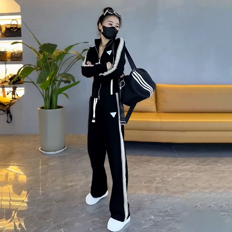 欧货休闲运动服套装女2025春秋新款韩版立领拉链卫衣阔腿裤两件套