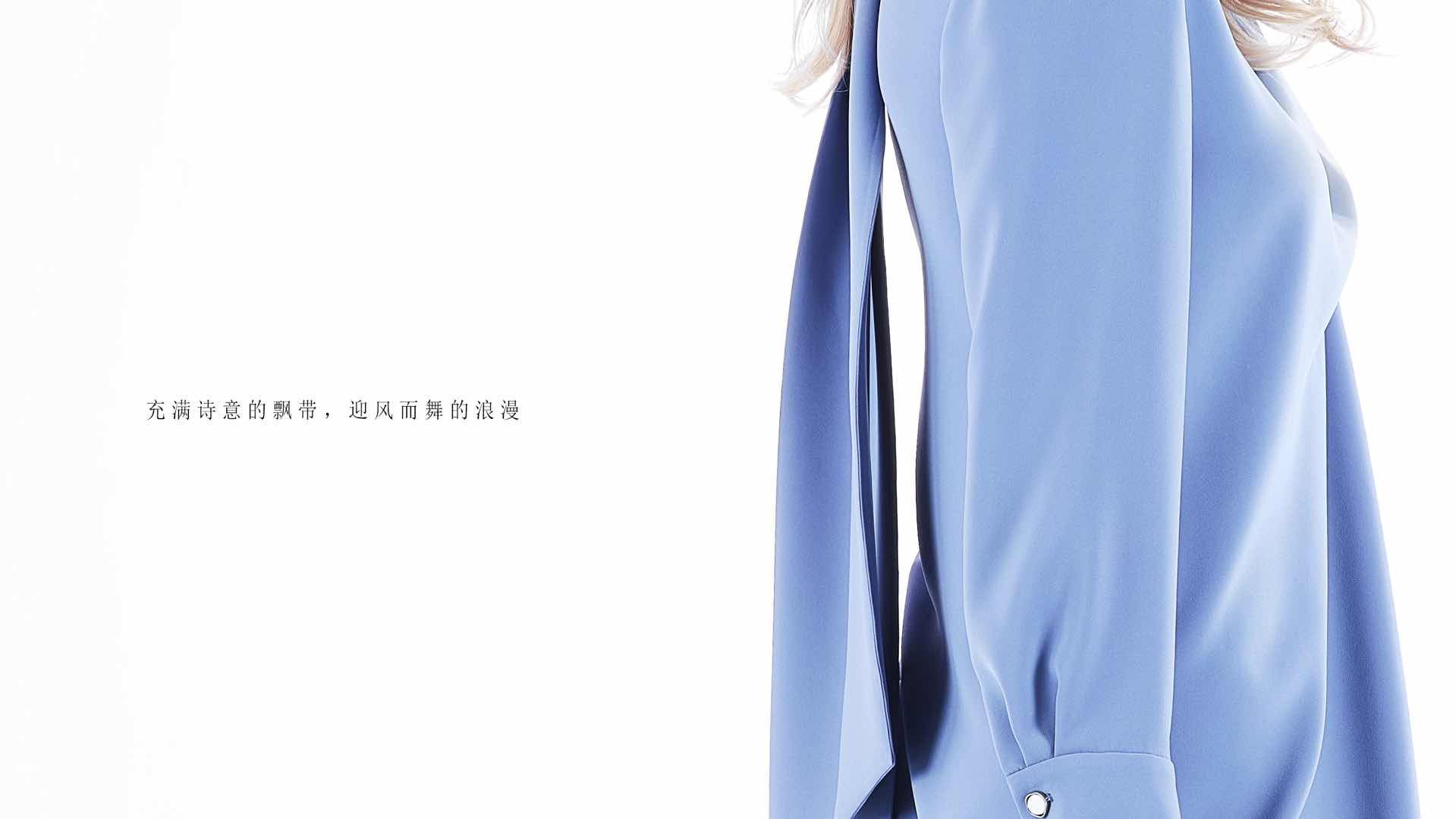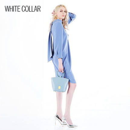 白领麻纱圆领佩飘带宽松款长袖连衣裙MASHA20-306