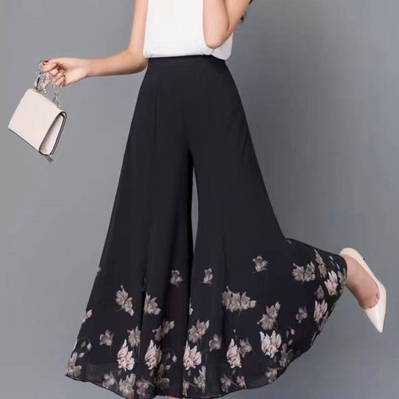 雪纺阔腿裤裙女印花夏季新款休闲气质百搭妈妈装九分裤小个子长裤