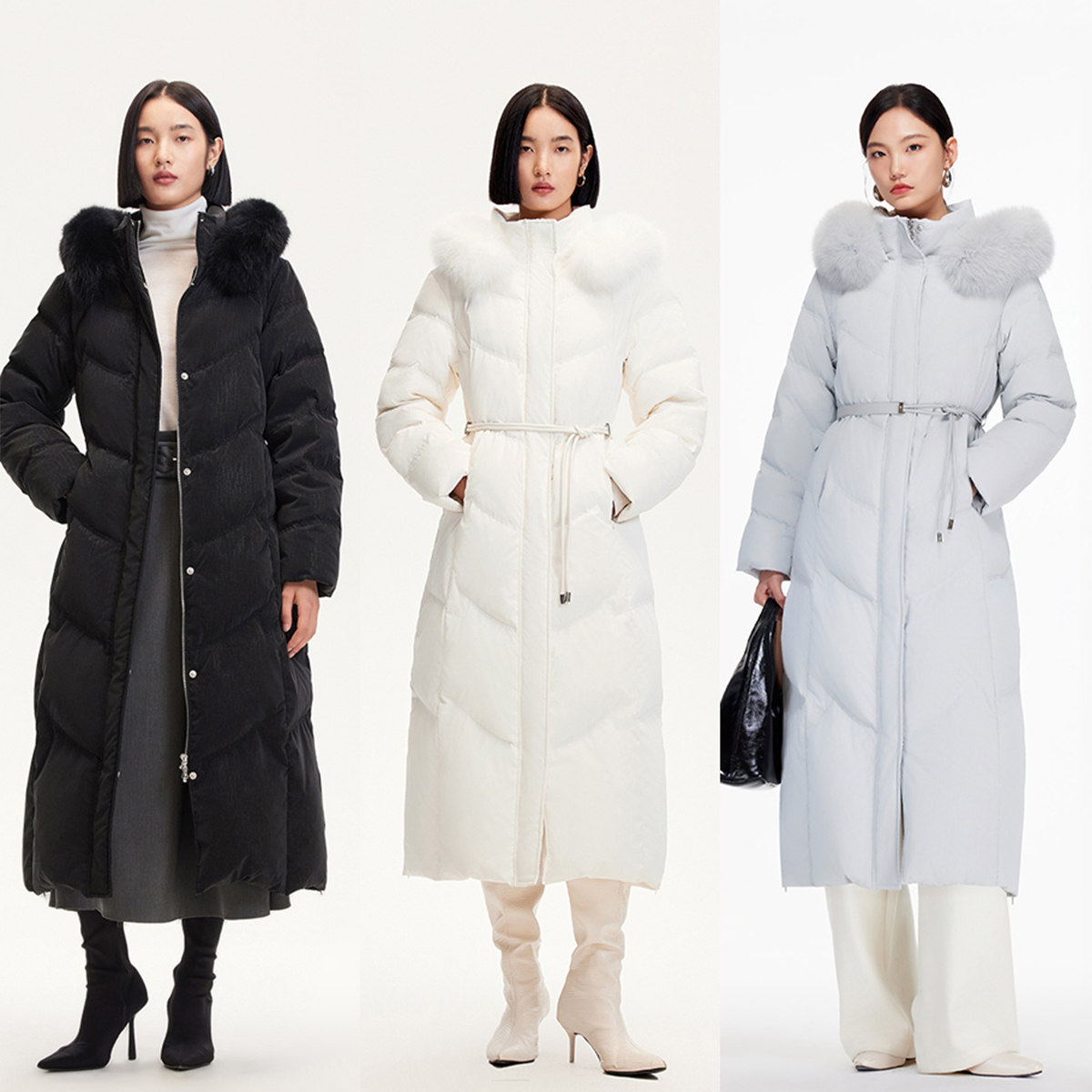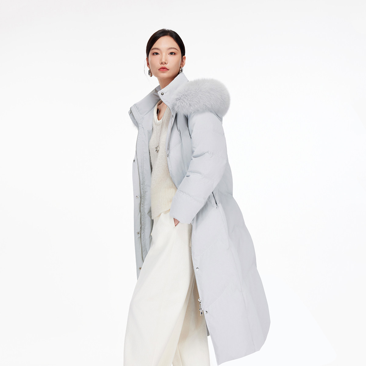 绫致Vero Moda羽绒服2025冬季新款90白鹅绒狐狸毛领羽绒服
