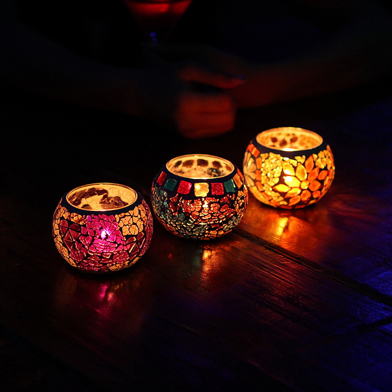 手工制作马赛克玻璃烛台欧式复古摆件礼品烂漫酒吧蜡烛杯家居饰品