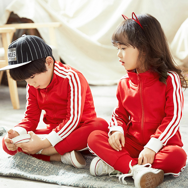 幼儿园园服春秋装中小学生校服儿童运动会班服亲子Y套装红色定制