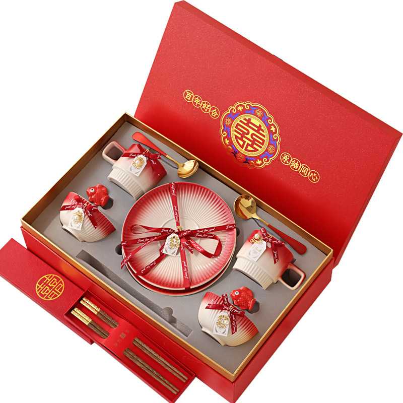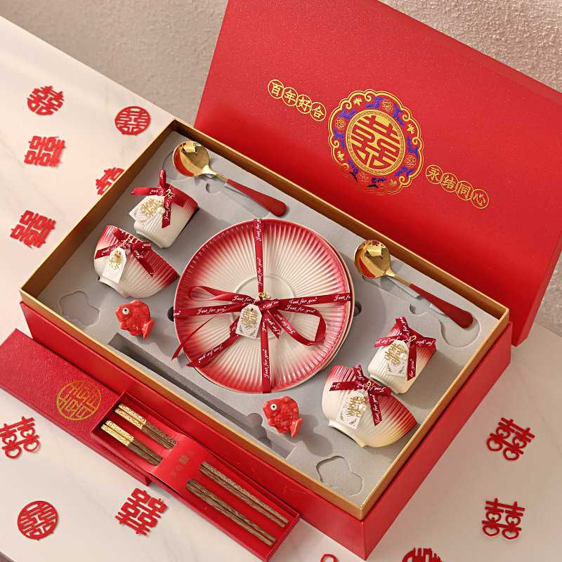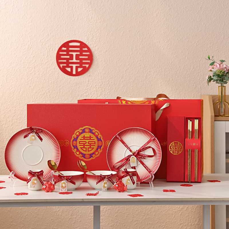 新款直销新婚礼物新人餐具碗碟盘陪嫁礼盒套装结婚送新娘创意实用