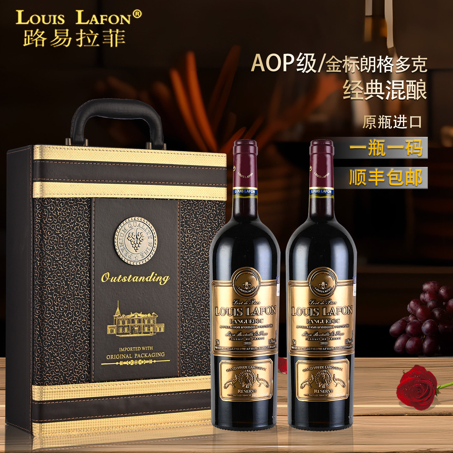 红酒路易拉菲LOUISLAFON孔雀堡朗格多克AOC级原瓶进口干红葡萄酒