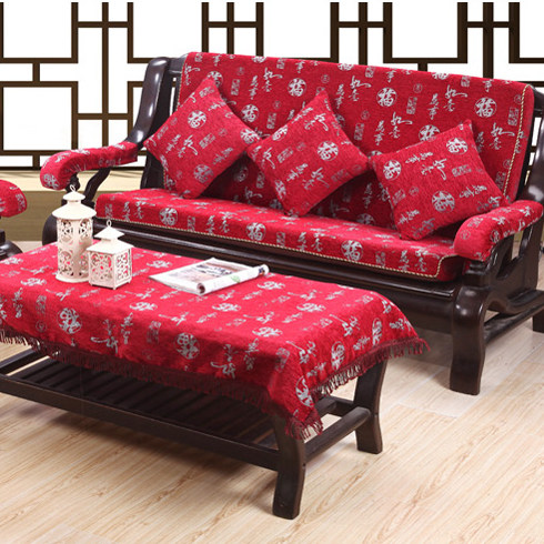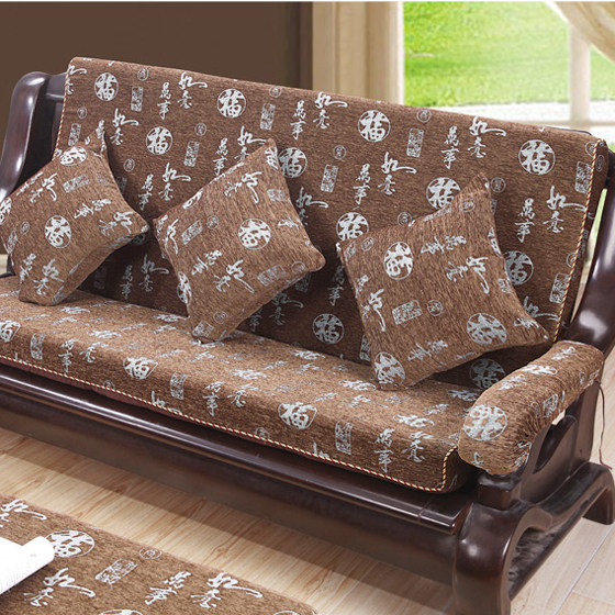 四季通用红木沙发垫 实木坐垫 三人座中式加厚椅垫布艺带靠背垫子