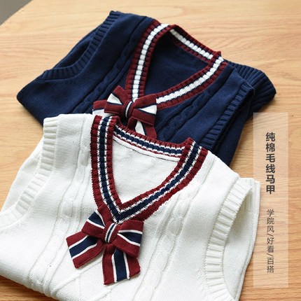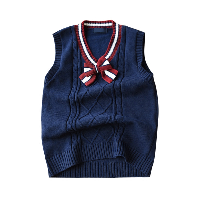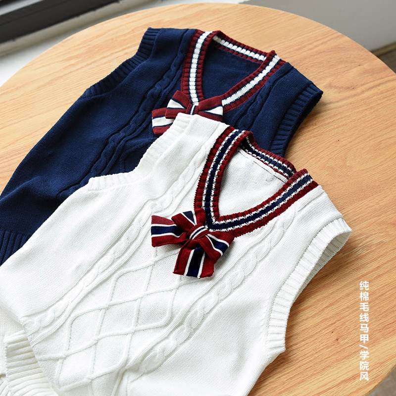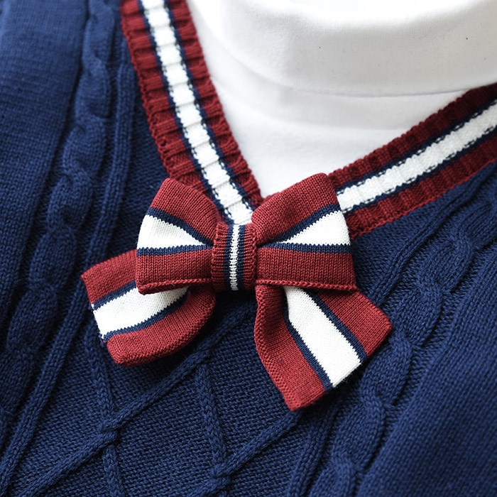 学院风 儿童纯棉毛线马甲 女童针织背心 蝴蝶领结 中大童