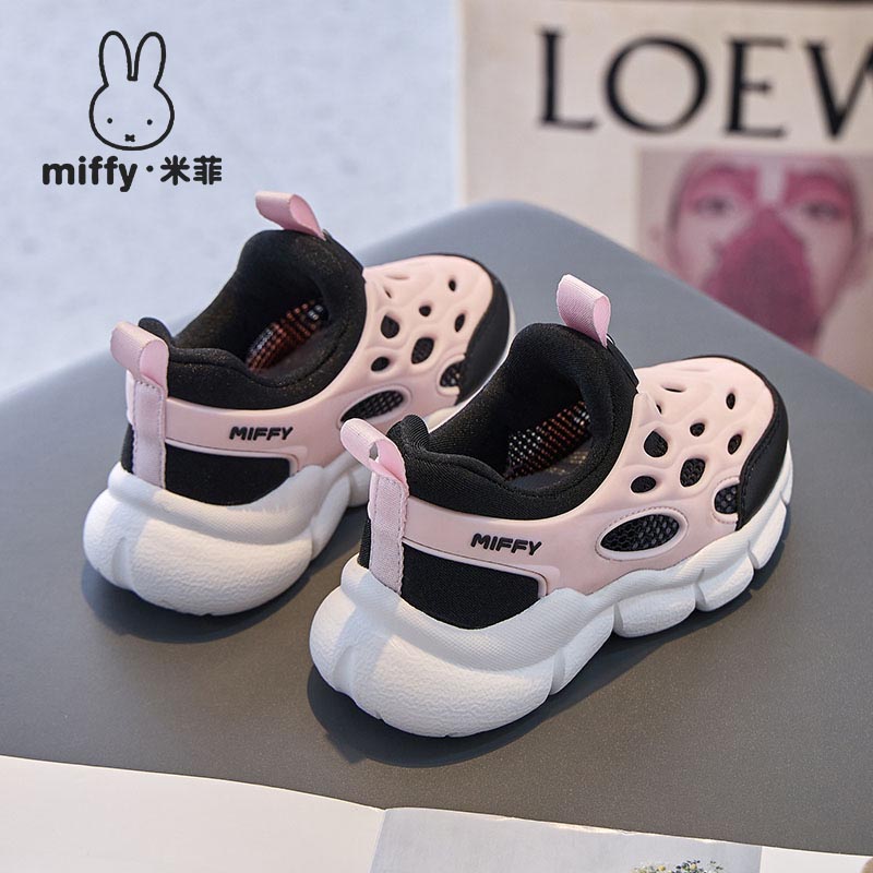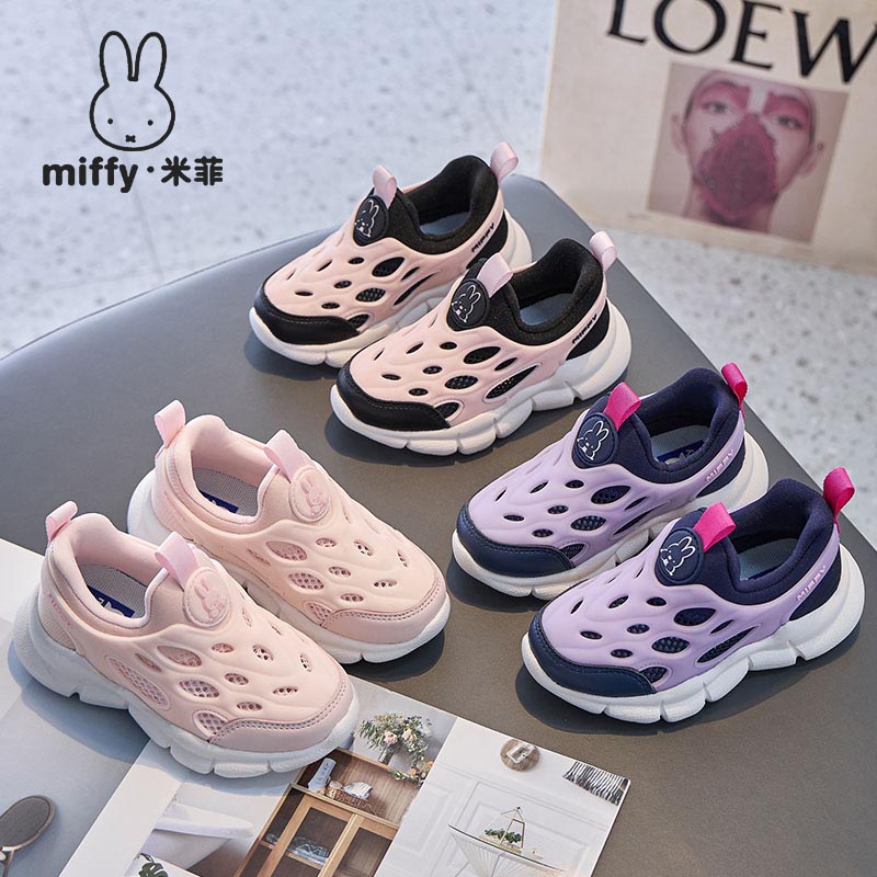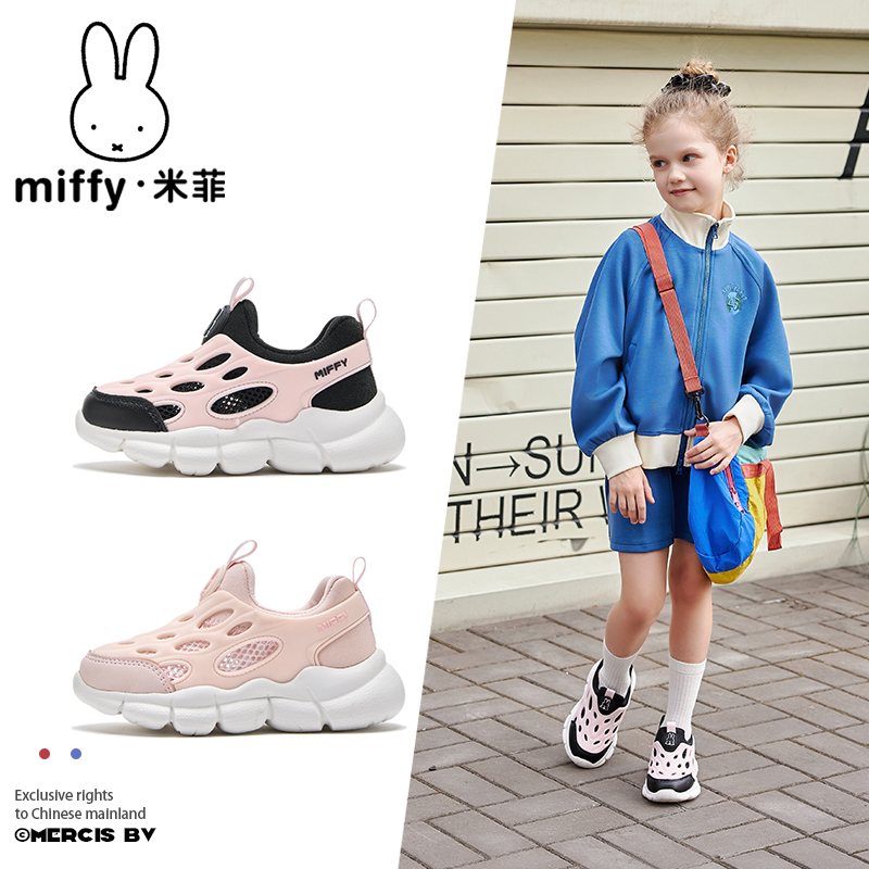 MIFFY米菲童鞋夏季女童轻盈跑步鞋一脚蹬镂空透气网面休闲运动鞋