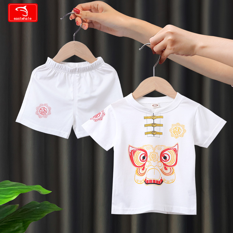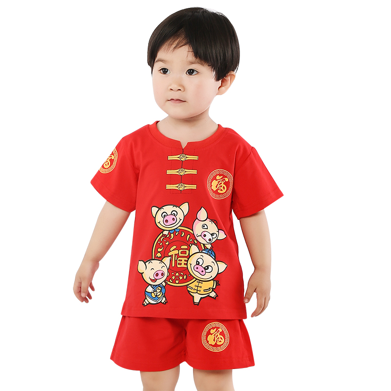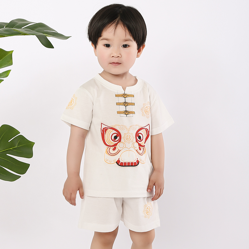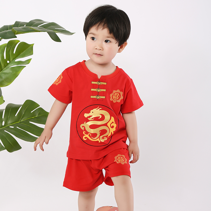 儿童汉服男童唐装抓周夏装短袖纯棉百日宴童装男宝宝套装婴儿抓周