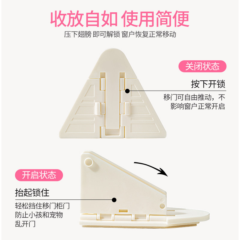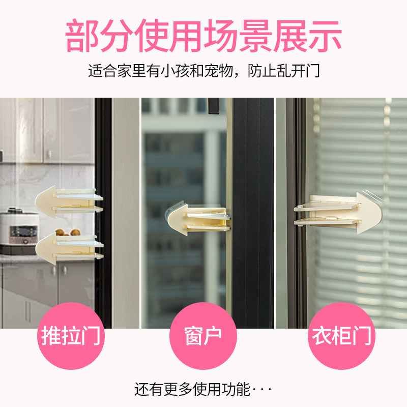 防开窗户儿童安全锁免打孔防开门卡扣神器推拉门衣柜移门锁扣限位