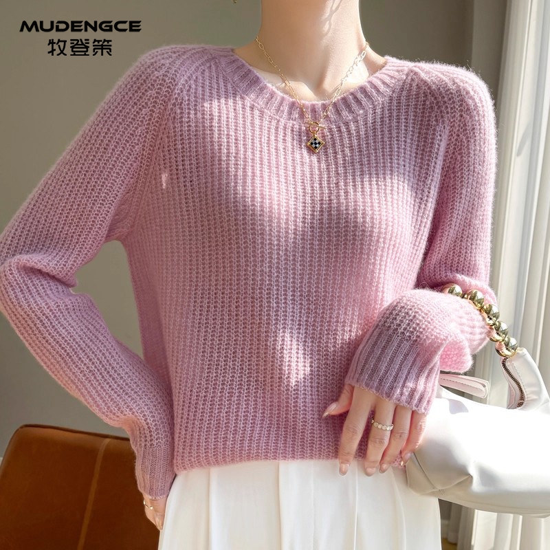高级感圆领羊绒衫女秋冬新款套头保暖长袖毛衣内搭宽松休闲打底衫