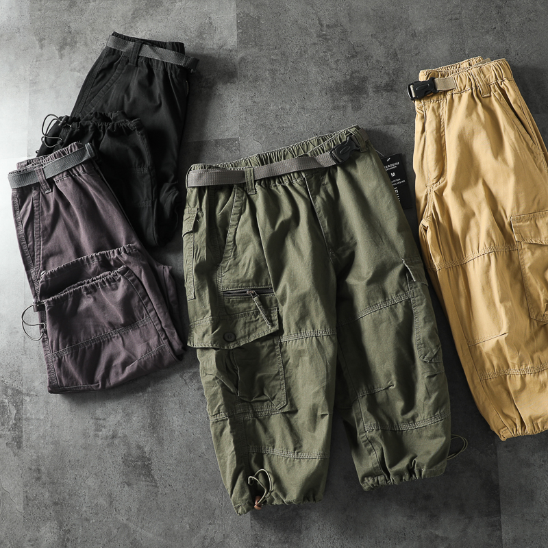 工厂尾货单夏季可收脚口五分裤男士大码休闲多口袋工装七分裤马裤