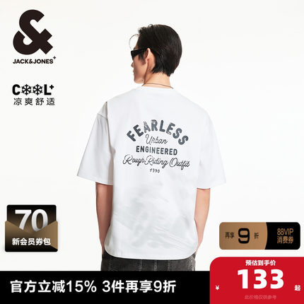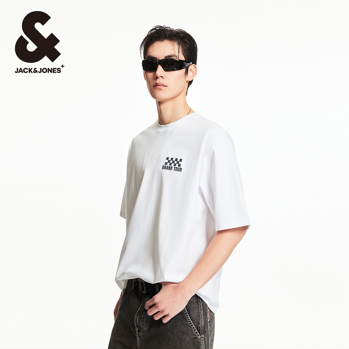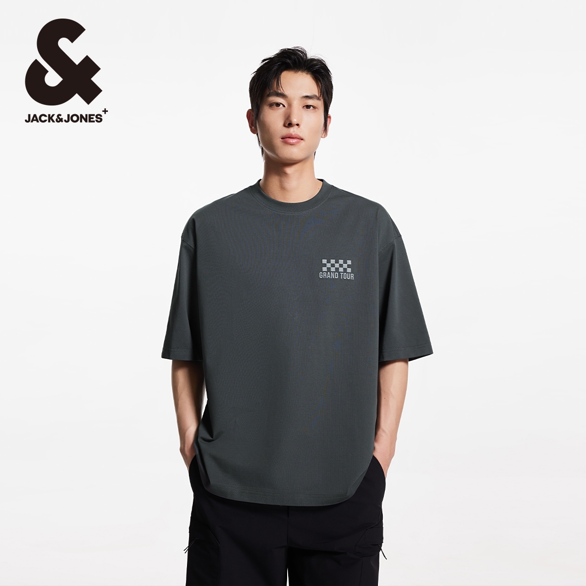 杰克琼斯夏季新款胸前刺绣棋盘格休闲上衣男士短袖男款T恤男装