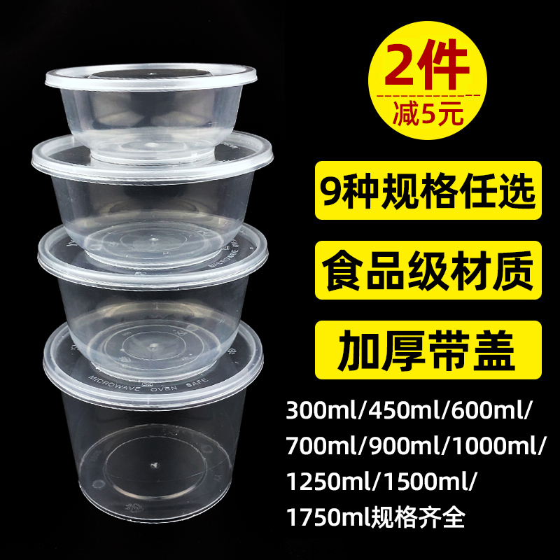 一次性餐盒1000ML圆形塑料外卖打包盒加厚透明快餐便当盒汤碗带盖