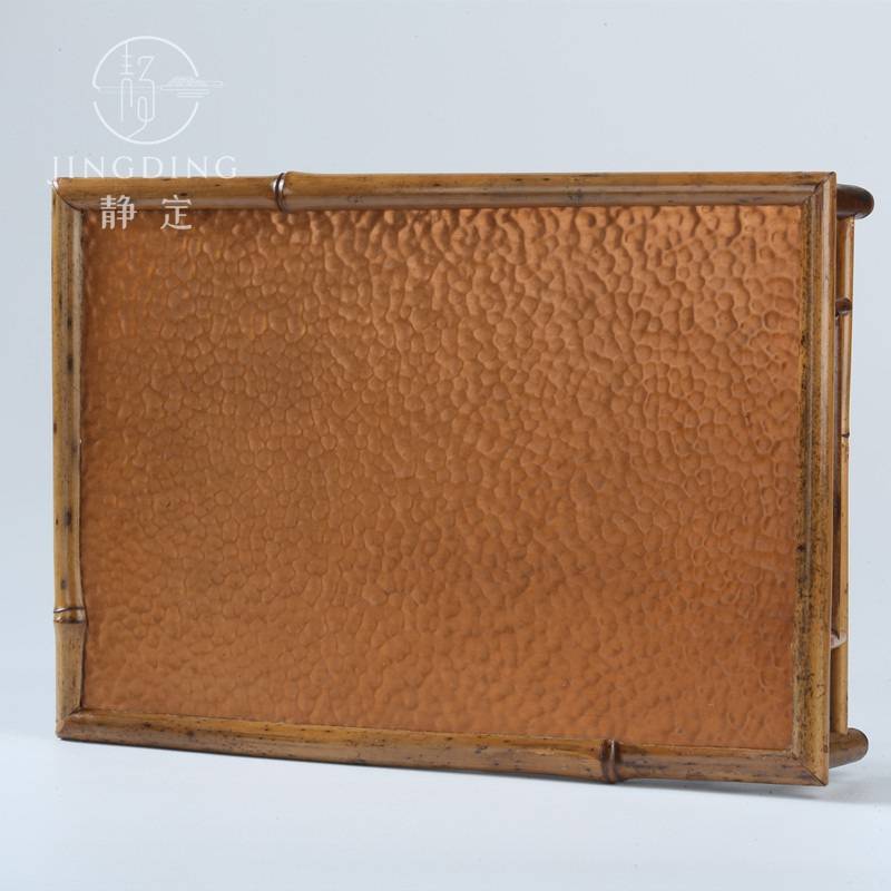梅鹿竹复古手工锤纹铜茶台茶盘托盘家用干泡盘竹制壶承茶具收纳盘