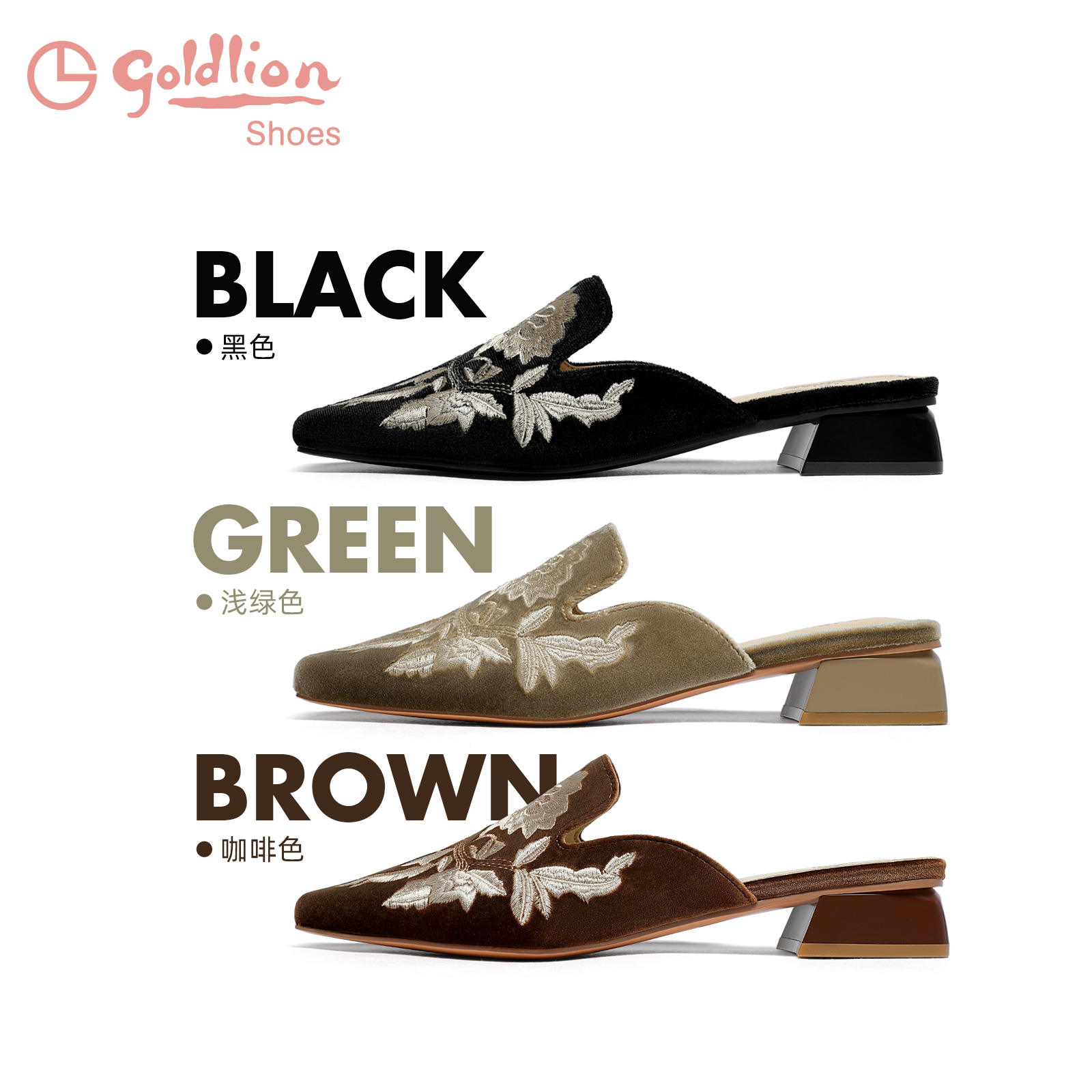金利来女鞋2025春夏新款新中式刺绣花包头半拖鞋女外穿低跟穆勒鞋