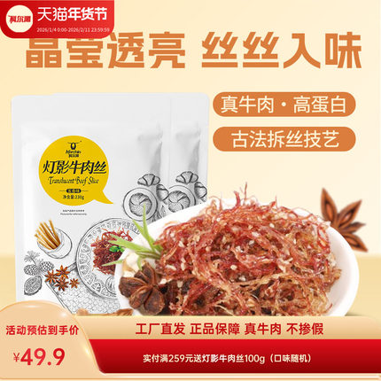 科尔沁灯影牛肉230g*2袋 香辣五香味牛肉丝 内蒙古特产零食小吃