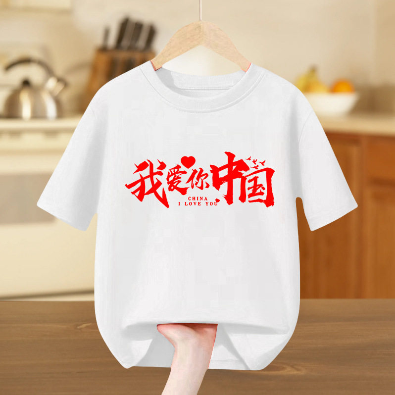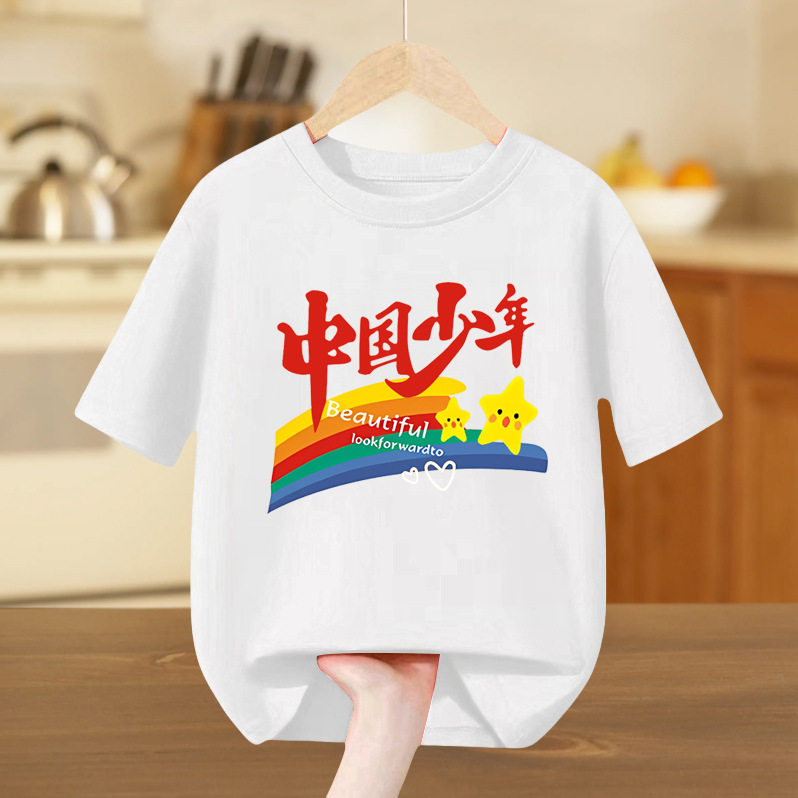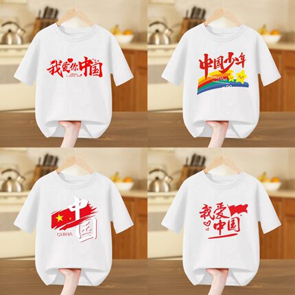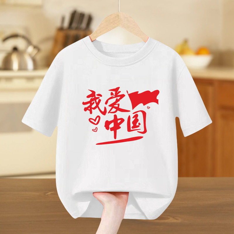 国庆短袖t恤中国少年儿童纯棉半袖中小学生幼儿园活动班服白上衣