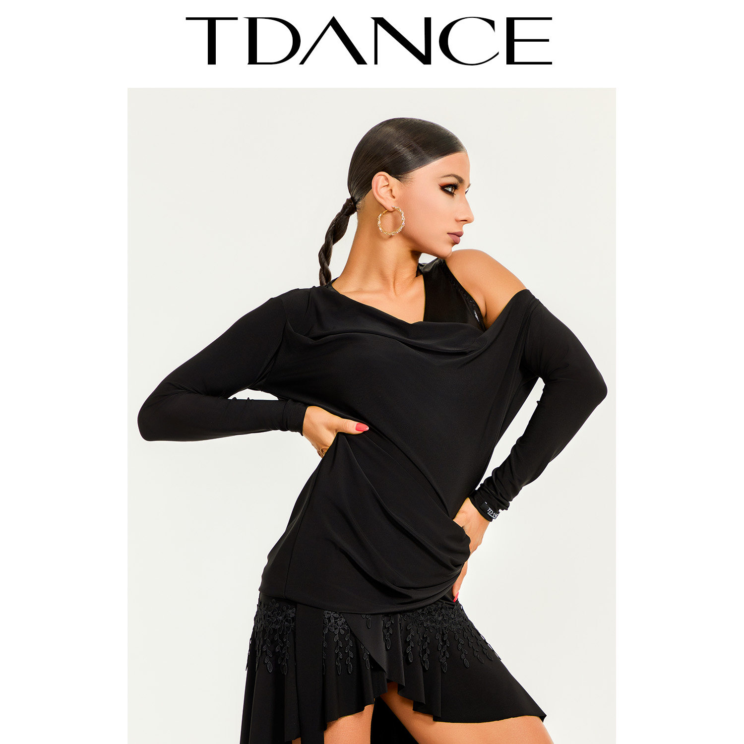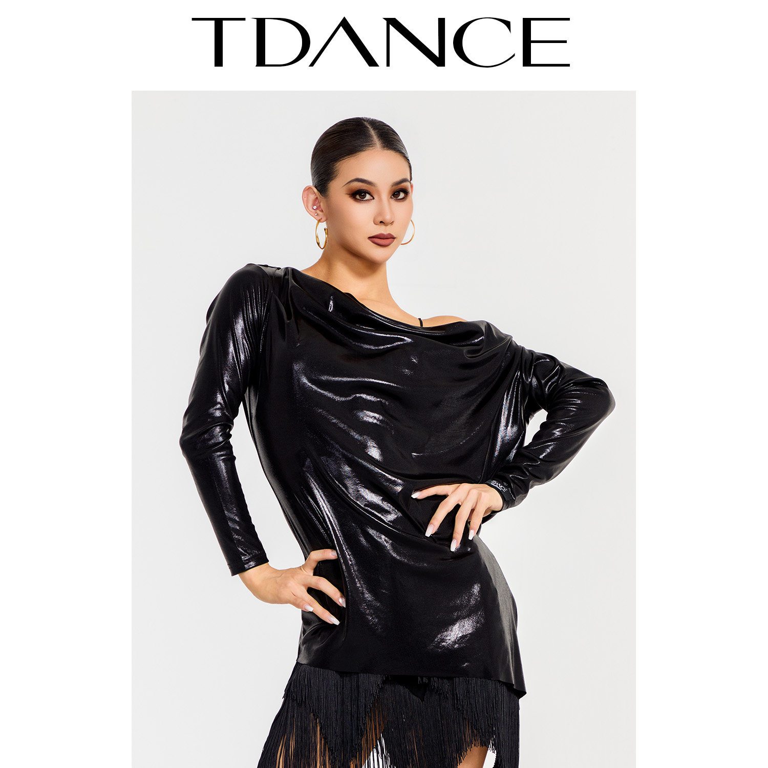 TDANCE拉丁练习服【后背荡领斜摆上衣】女成人舞衣搭配罩衫GL-56